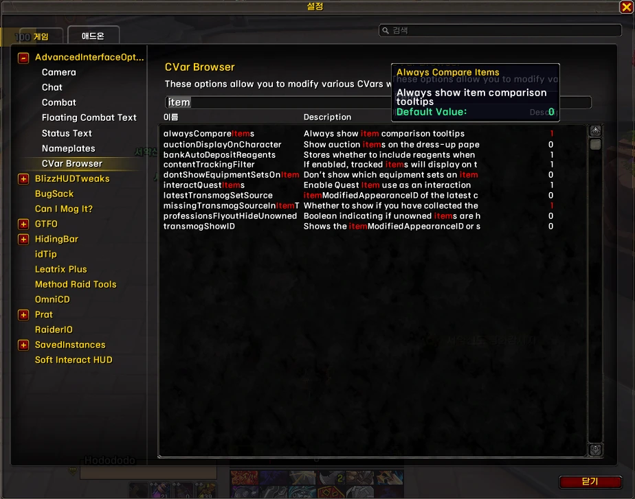AdvancedInterfaceOptions | 숨겨진 와우 Cvar 설정