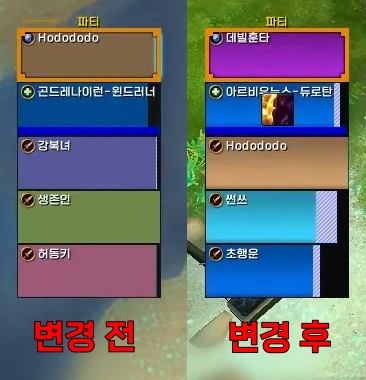 파티모집 창 하단에 현재 파티원의 해제, 블러드, 전부 등 유무를 보여줍니다.